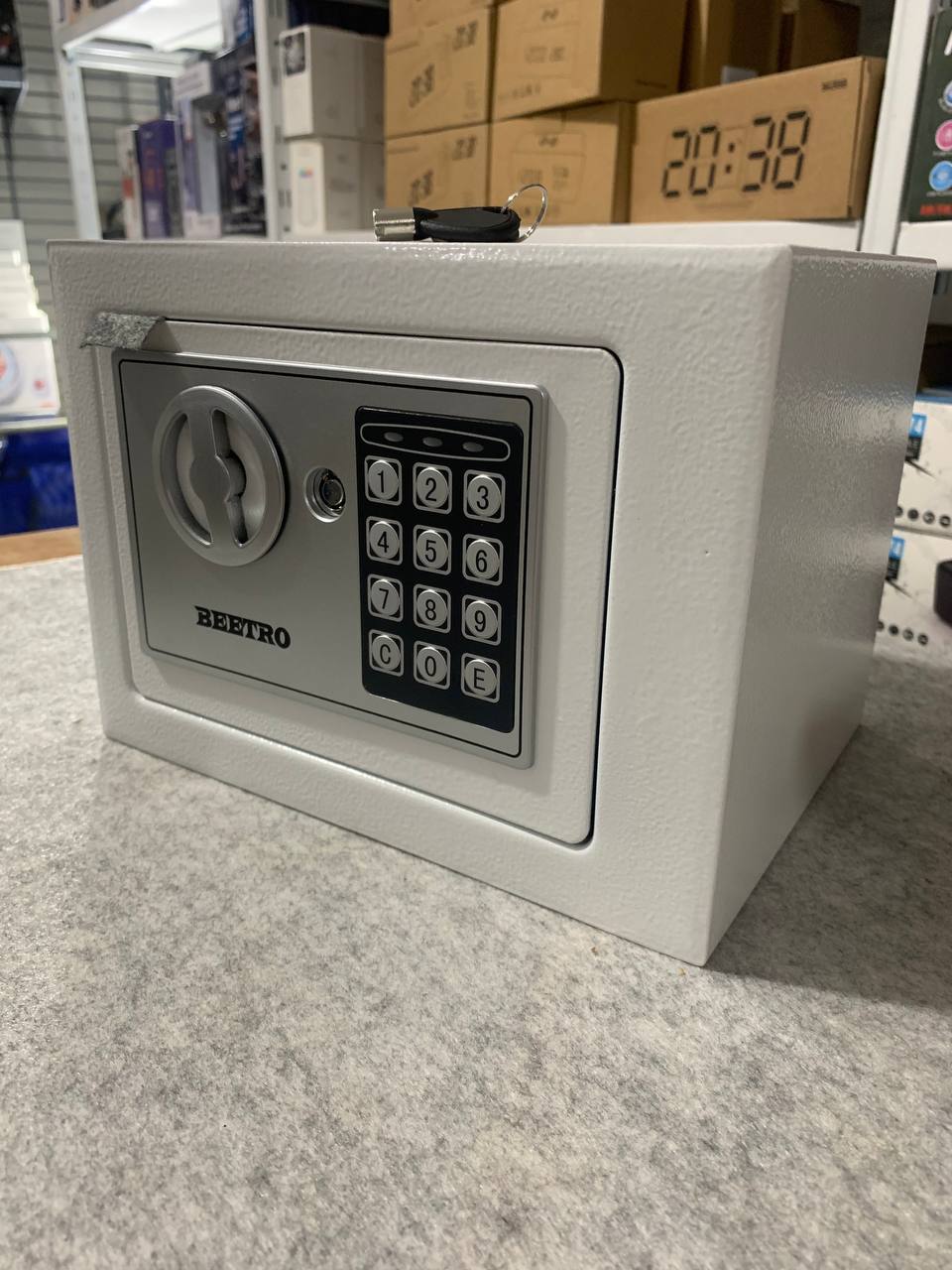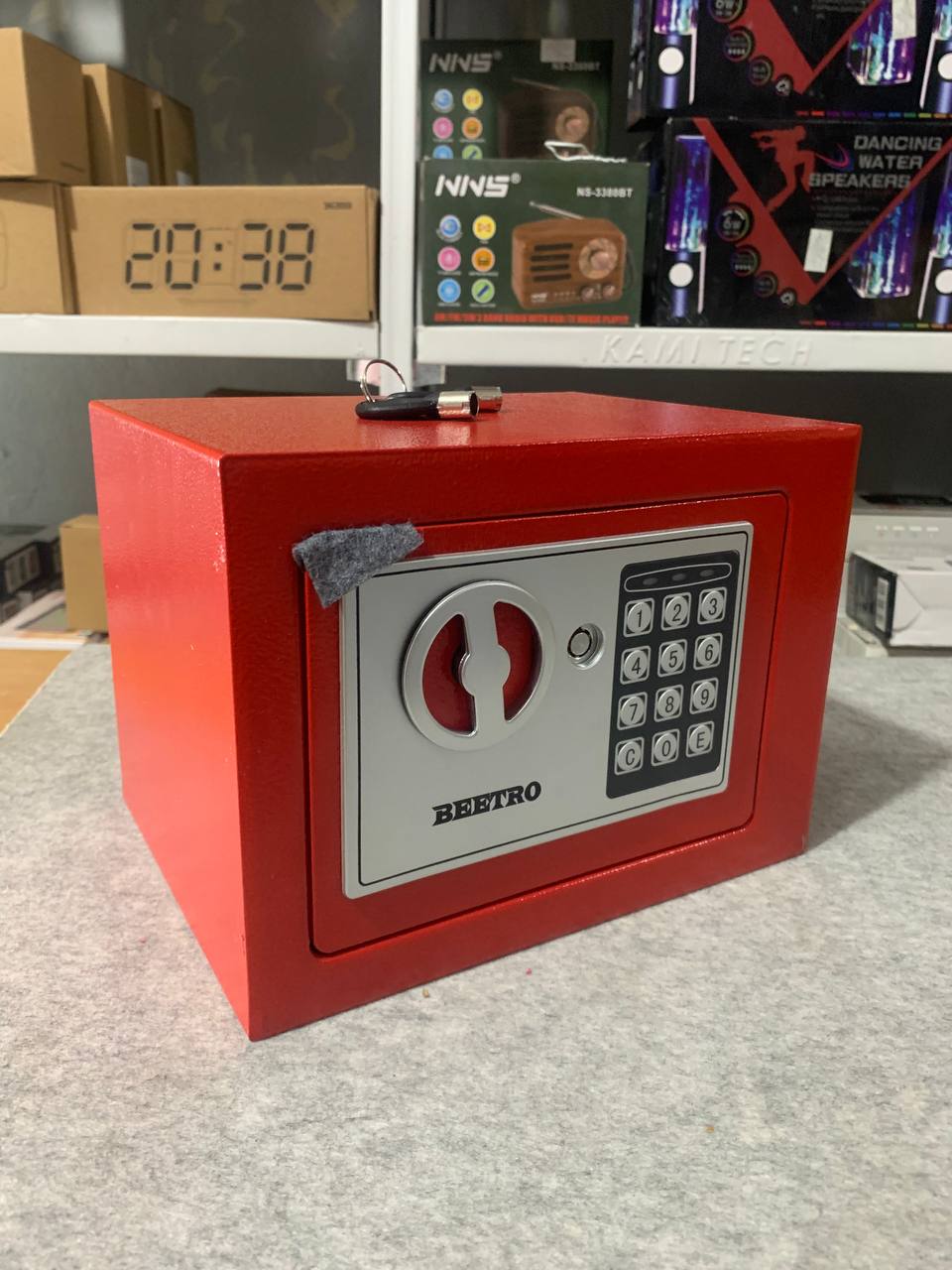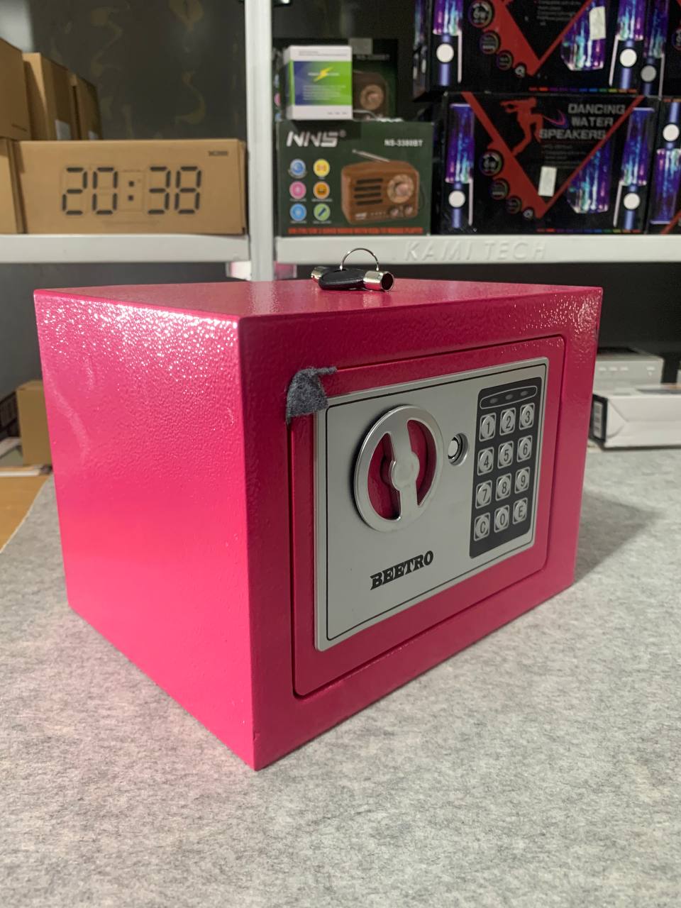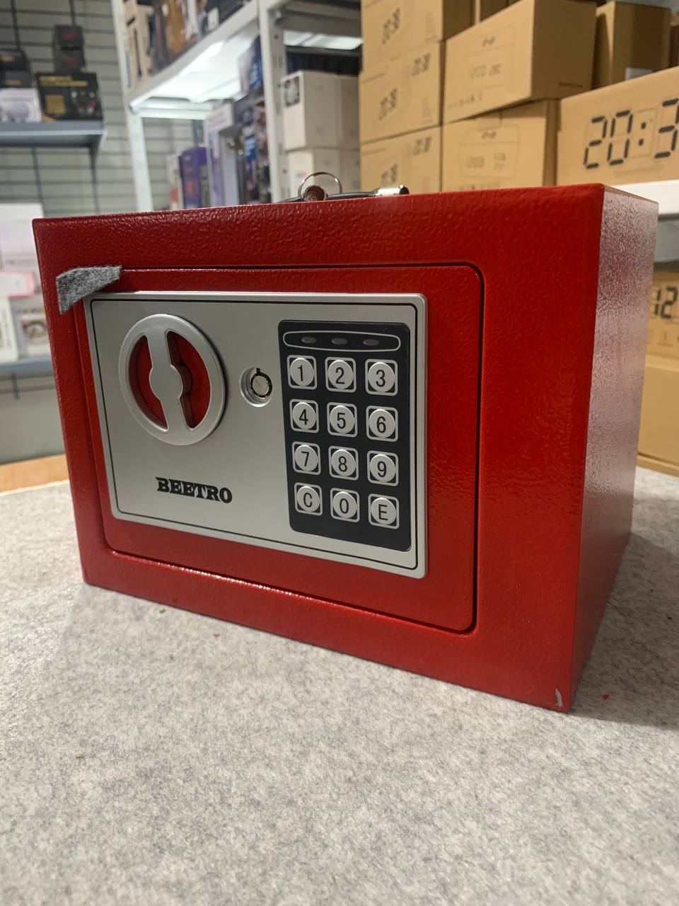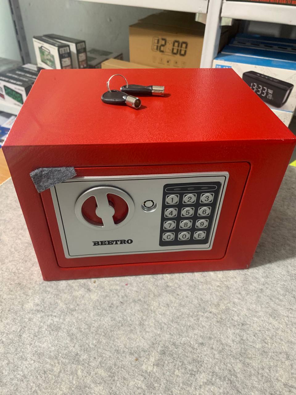 خزنة آمنة بترميز رقمي ومفاتيح احتياطية من Beetroقفل رقمي قابل للبرمجة (3 إلى 8 أرقام).إمكانية الفتح الطارئ باستخدام مفتاحين مرفقين.دعم التركيب على الجدار أو داخل الخزانة.قفل عالي الجودة بمزلاجين فولاذيين (إغلاق مزدوج).الوزن: 2.4 كجم.الأبعاد: 25×19×19 سم.
