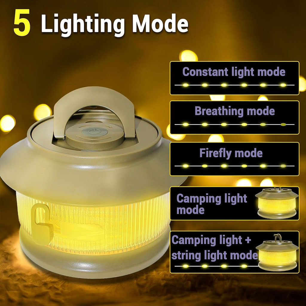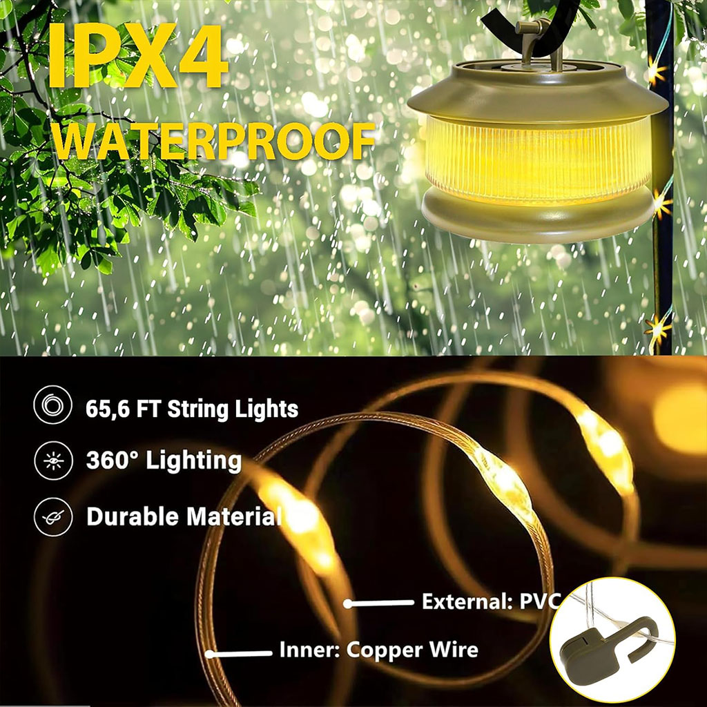 ✨ أضواء تخييم متعددة الوظائف – أجواء ساحرة في كل مكان🌟 إضاءة مزاجية متنوعة: من وهج الشموع إلى الإضاءة الساطعة أو الوضع المتنفس، تمنحك هذه السلسلة الضوئية أجواء مثالية لكل لحظة.🏕️ لمسة ساحرة في التخييم: إضاءة دافئة تضيف أجواء رومانسية ومريحة إلى خيمتك أو جلستك الخارجية تحت النجوم.🔁 تخزين سهل وذكي: ببساطة لف السلسلة في اتجاه عقارب الساعة وستنظم نفسها تلقائياً – بدون فوضى.🔌 شحن متعدد: اشحنها باستخدام كابل شحن الهاتف، لتضيء مكانك بسرعة وسهولة.💡 تصميم متين ومقاوم: مصنوعة من ABS وPC، مقاومة للماء بمعيار IPX4، مرنة وسهلة التثبيت – مثالية لجميع مغامراتك.