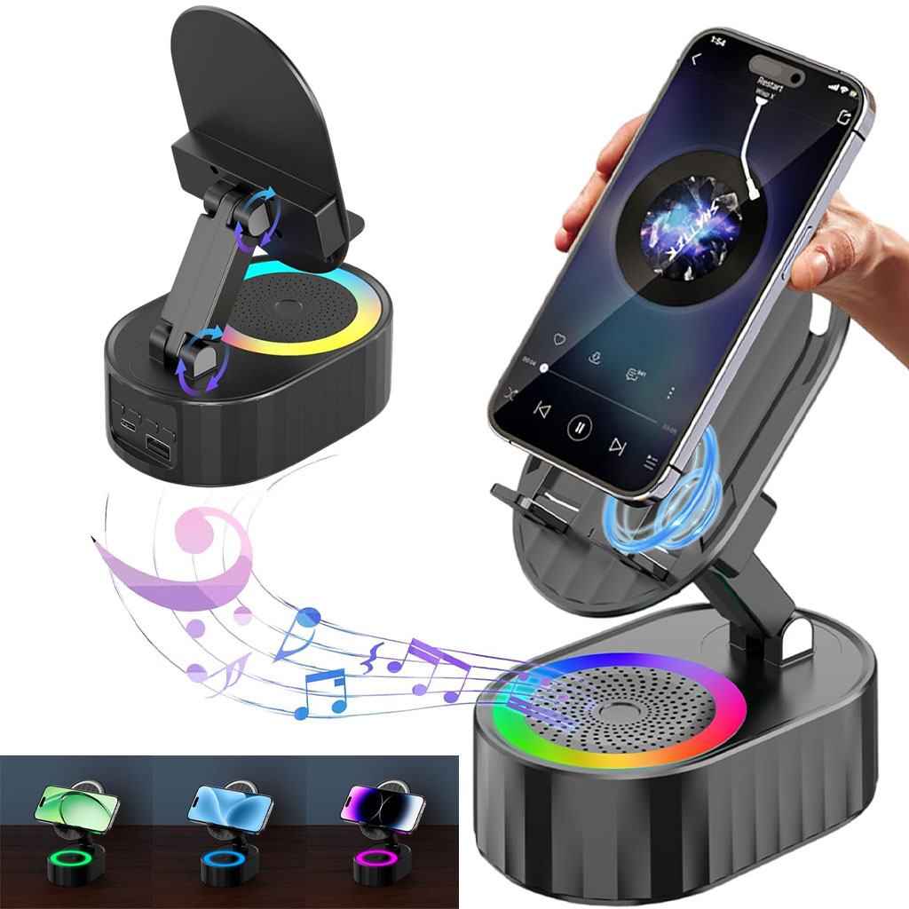 🔊 مكبر صوت بلوتوث ذكي بتقنية الاستشعار اللاسلكي (Induction)🚀 تقنية متطورة 2 في 1 مكبر صوت يعمل بطريقتين:🔵 وضع البلوتوث: مزود بأحدث تقنية Bluetooth 5.3 لاستهلاك طاقة منخفض، نقل أسرع، اتصال ثابت بدون تأخير.📡 وضع الاستشعار اللاسلكي: فقط ضع هاتفك على السماعة، وخلال 1–3 ثوانٍ يبدأ تشغيل الصوت مباشرة بدون بلوتوث!🎶 صوت قوي ومذهل بفضل مكبر صوت مدمج بقوة 5 واط:🔊 باس عميق وقوي🎼 صوت متوسط متوازن✨ نغمات عالية واضحة ونقية تجربة صوتية محيطية ستيريو بجودة عالية مهما كان مستوى الصوت.🔥 تصميم فريد وممتع 5 في 1جهاز متعدد الوظائف يجمع بين:🔊 مكبر صوت بلوتوث📡 مكبر صوت بالاستشعار اللاسلكي🔋 شحن طوارئ عبر منفذ USB📱 حامل هاتف🌈 إضاءة محيطية LEDكل ذلك في جهاز واحد أنيق وعملي!📱 حامل هاتف قابل للتعديل🔄 دوران أفقي حتى 300°📐 استخدام عمودي أو أفقي حسب راحتك🙌 حرر يديك لمشاهدة الفيديوهات، الألعاب، مكالمات الفيديو🛡️ تصميم مانع للانزلاق (قاعدة + سيليكون) لحماية هاتفك من السقوط🌈 إضاءة محيطية جذابة💡 6 ألوان فردية🎆 5 أوضاع إضاءة متعددة🎥 مثالية لمشاهدة الأفلام أو الاسترخاء أو الاستماع للموسيقى تضيف لمسة جمالية عصرية ومريحة للعين.🎁 هدية ذكية ومميزةمناسبة للرجال والنساء 👨👩👧👦مثالية لكبار السن وضعاف السمع 👂🏠 للاستخدام في: غرفة النوم، المكتب، المطبخ🏕️ ممتازة للتخييم، الرحلات، اليوغا، المشي📲 توافق عالمي: تدعم الهواتف، التابلت، وأجهزة القراءة الإلكترونية من 4 إلى 13 بوصة.📏 المواصفات:الأبعاد: 15.6 × 10.8 × 7.62 سمالوزن: 322 غرام