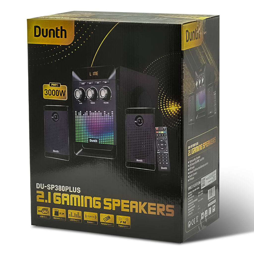 🔊 سماعة DUNTH DU-SP380PLUS بقدرة 3000 واطقوة صوتية هائلة بقدرة 3000 واط لجودة صوت احترافية تناسب الحفلات والمناسبات.خيارات اتصال متعددة: بلوتوث، مدخل USB، منفذ بطاقة ذاكرة، وراديو FM مدمج.إضاءة LED ديناميكية بتأثير لهب متغير اللون داخل مضاعفات الصوت لإضفاء أجواء ساحرة.تصميم عصري أنيق مع زر تحكم في مستوى الصوت لسهولة الضبط.ريموت كنترول للتحكم بالموسيقى عن بُعد بكل سهولة.
