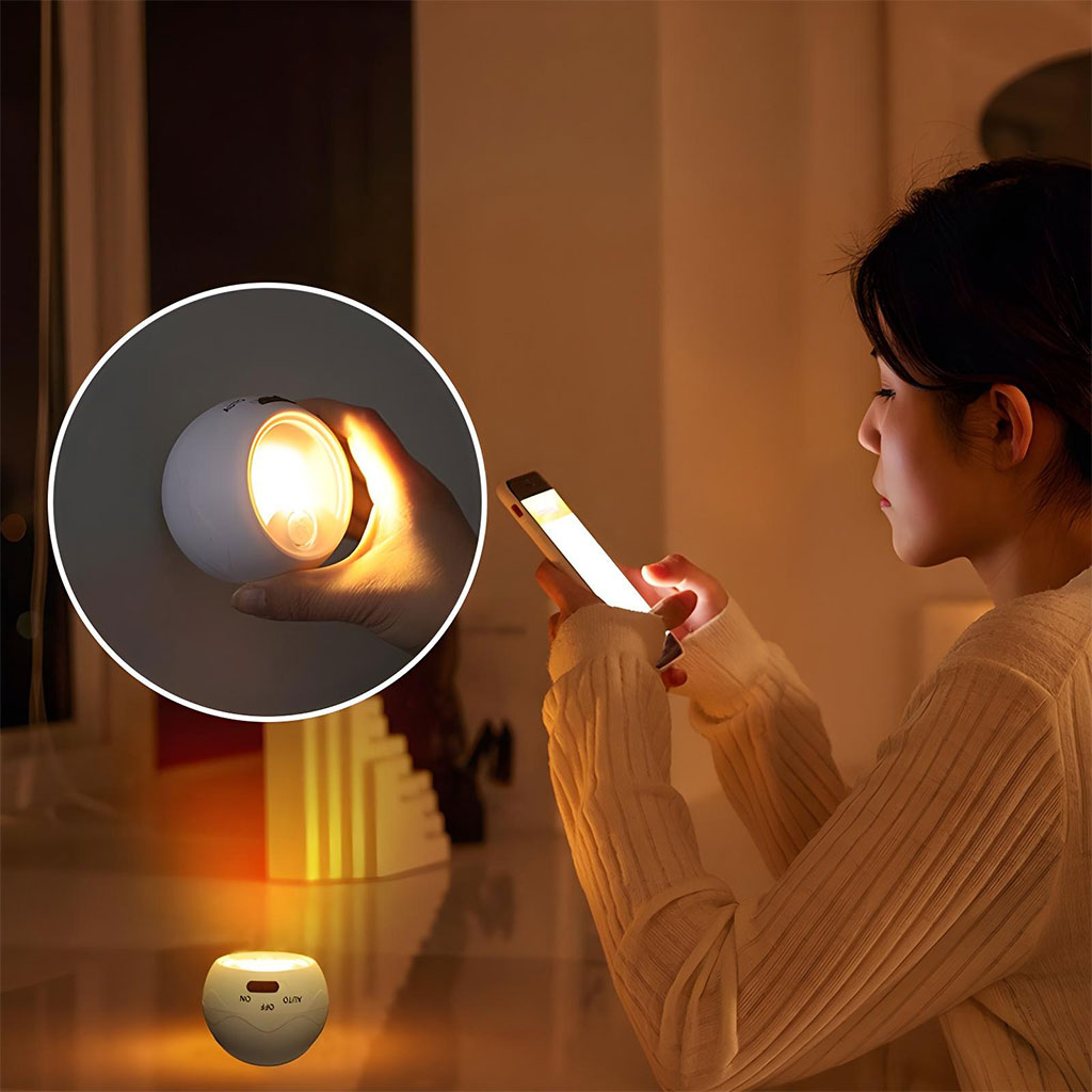 مصباح استشعار حركة متعدد الاستخداموضعي إضاءة:AUTO: تشغيل تلقائي عند استشعار الحركة في الظلام، وإيقاف تلقائي بعد 15-25 ثانية بدون حركة.ON: تشغيل دائم لاستخدامه كمصباح يدوي.تركيب مرن: قاعدة تثبيت بمسمار أو لاصق، مع مغناطيس قوي للسطوح المعدنية.مزود بالطاقة عبر 3 بطاريات AAA (غير مشمولة).تصميم دوّار 360°: لتوجيه الإضاءة بسهولة نحو أي زاوية.استخدامات متعددة: مناسب للإضاءة الداخلية مثل الخزائن، الدرج، غرف الأطفال أو كمصباح محمول.