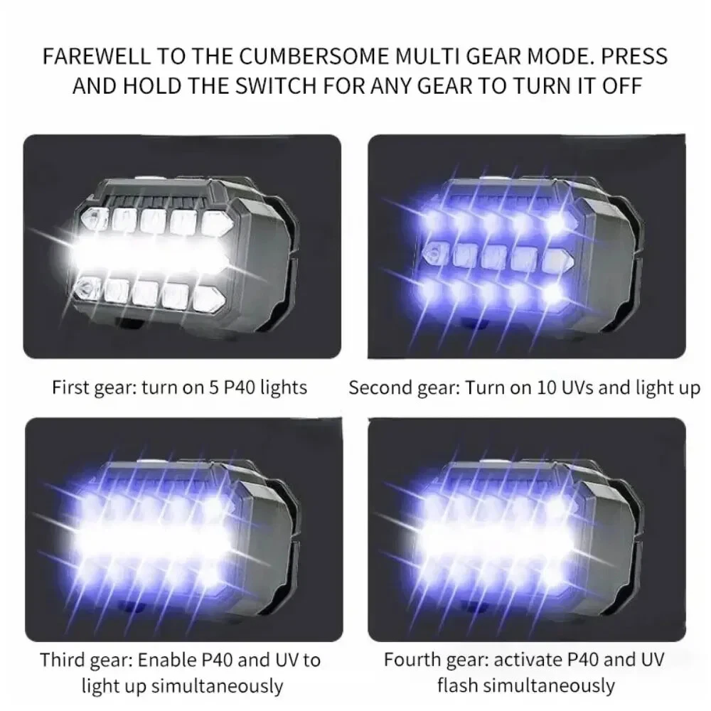 إضاءة مزدوجة ذكية: يجمع بين الإضاءة البيضاء القوية للرؤية الليلية الواضحة، والإضاءة فوق البنفسجية (UV) المخصصة لكشف العقارب أو فحص السوائل والأشياء غير المرئية.