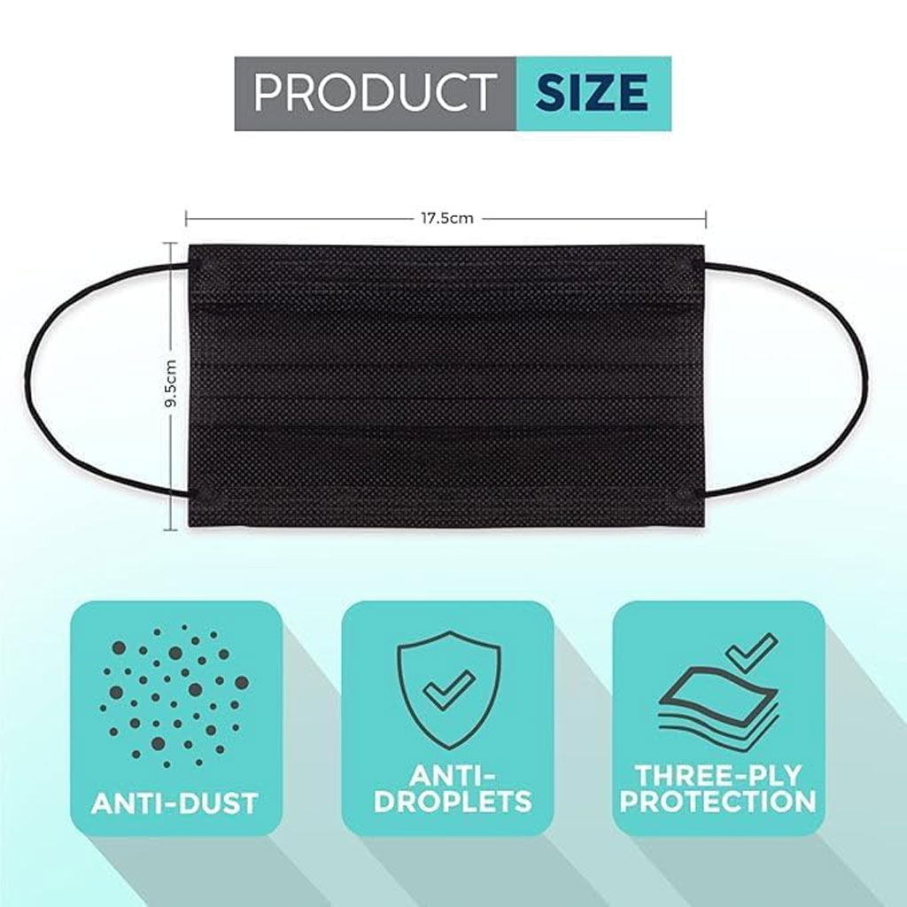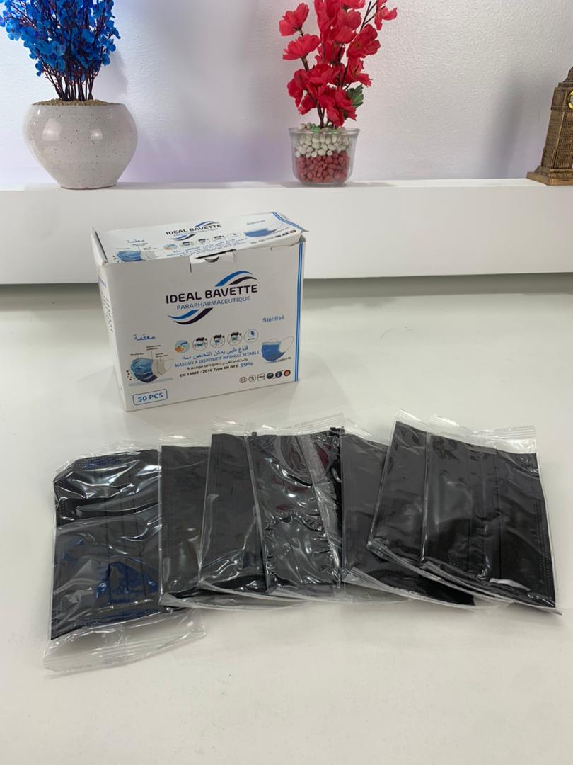 Lot de 50Pcs Bavettes jetables à trois couches – علبة كمامات سوداء
