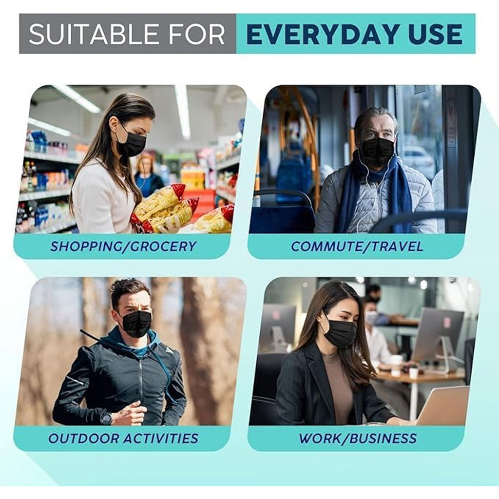Lot de 50Pcs Bavettes jetables à trois couches - علبة كمامات سوداء