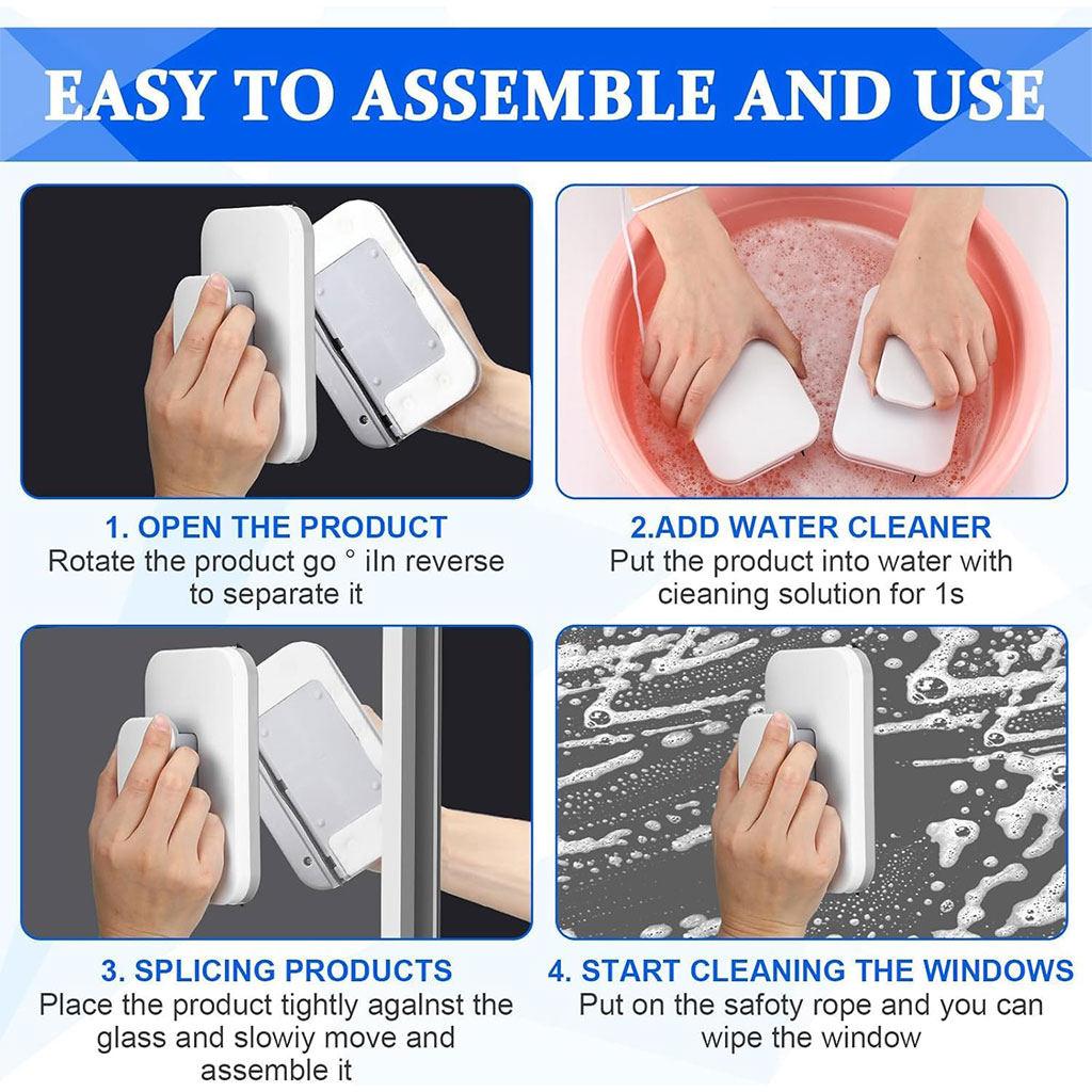 Nettoyeur de Vitres Magnétique Double Face avec Corde Antichute – ممسحة زجاج مغناطسية