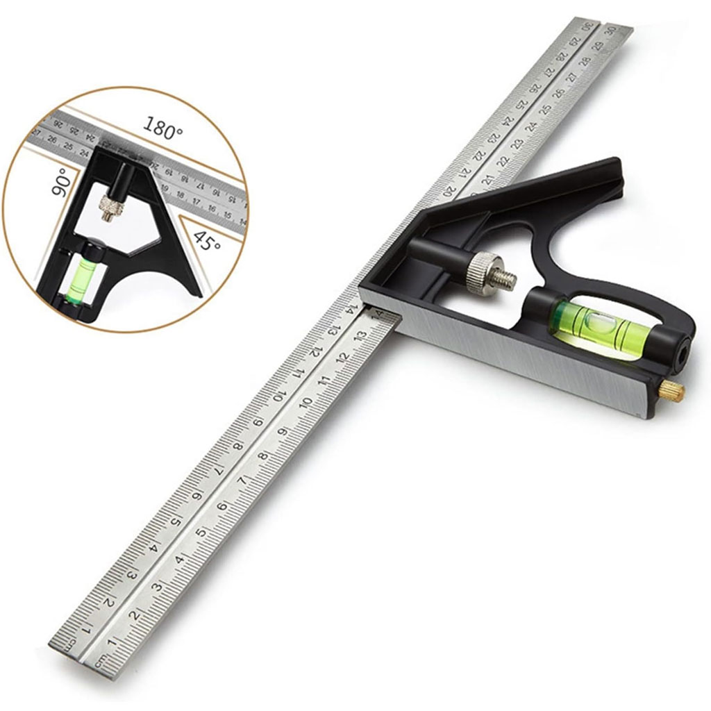 Outils de Menuiserie Carrée en Acier Inoxydable de 12’/300 mm, Règle de 45/90 Degrés avec Niveau à Bulle.