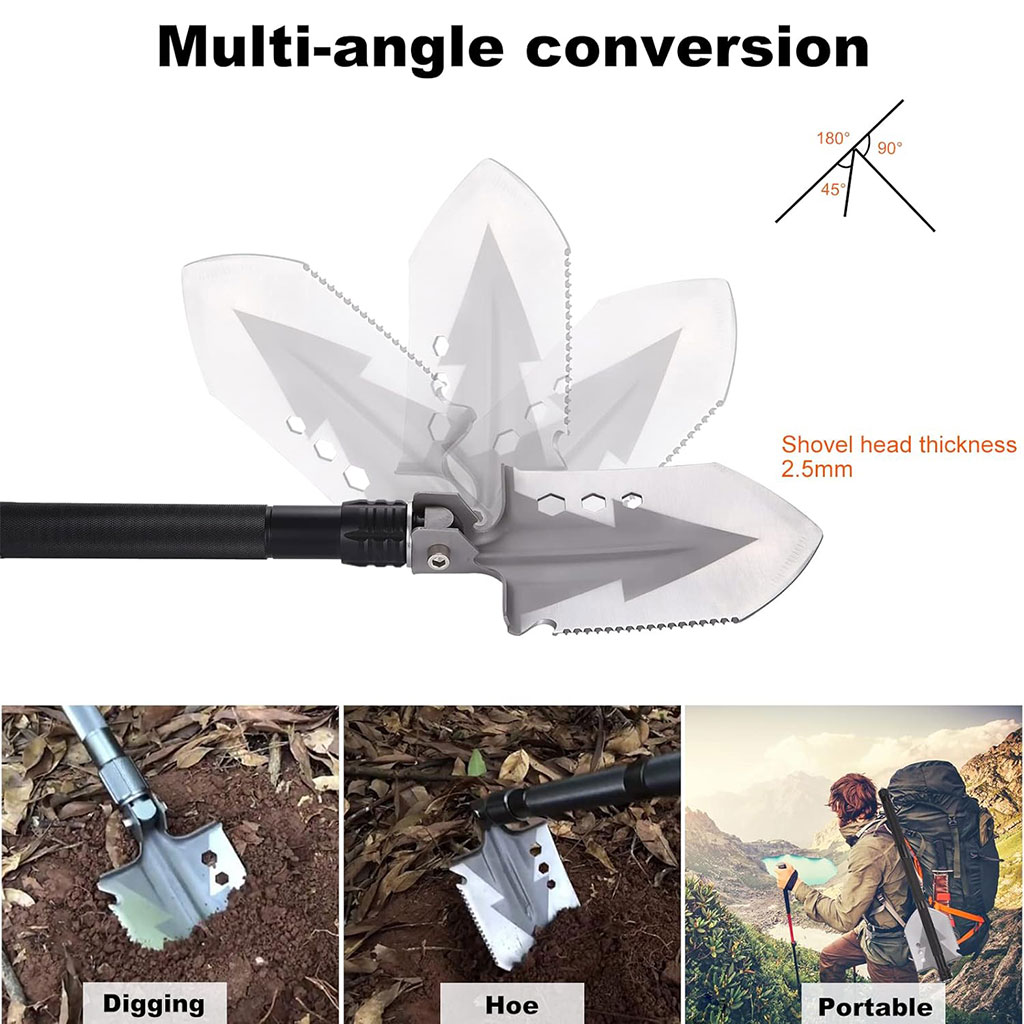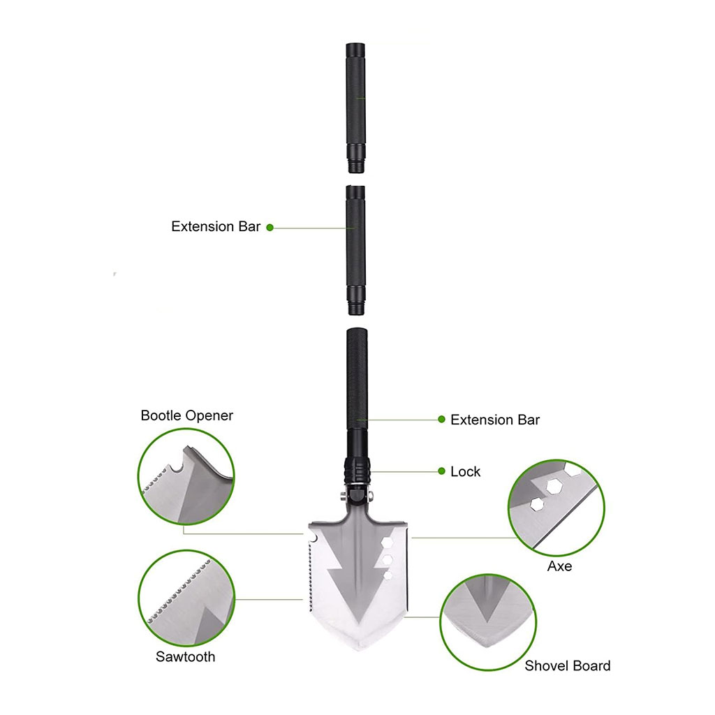 ⛺️ مجرفة تخييم متعددة الاستعمالات – أداة البقاء المثالية✔️ قوية وصلبة : مصنوعة من فولاذ عالي الكربون لمقاومة أقصى الظروف. ✔️ أداة 3 في 1 : مثالية للحفر، تقطيع الأشجار، حفر الخنادق أو حتى كأداة بستانية للغرس. ✔️ معدات نجاة مدمجة :🧭 بوصلة لتحديد الاتجاه🍾 فتّاحة زجاجات⛏️ معول للصيد أو الرحلات الشتوية✔️ تصميم قابل للتعديل : يمكن ضبط طولها بين 36.8 سم و 71.9 سم حسب الحاجة. ✔️ مساحة تخزين ذكية : المقبض يحتوي على مقاطع داخلية لتخزين أدوات النجاة الإضافية. ✔️ سهولة النقل : تأتي مع حقيبة متينة مزودة بحزام وحلقة Velcro لحملها وتنظيم جميع القطع.📐 الأبعاد : 74 × 13.9 × 3.0 سم ⚖️ الوزن : 1.62 كغ 🎨 اللون : أسود (28 بوصة) 🛠 المادة : فولاذ عالي الكربون
