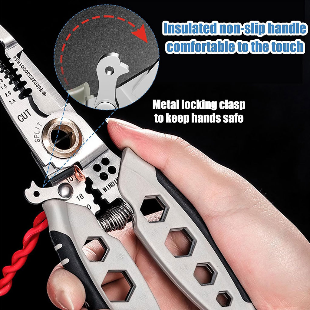 Pince à Dénuder Multifonction de 17,8 cm 9-en-1 Outil à Dénudage Pour Électriciens Professionnel