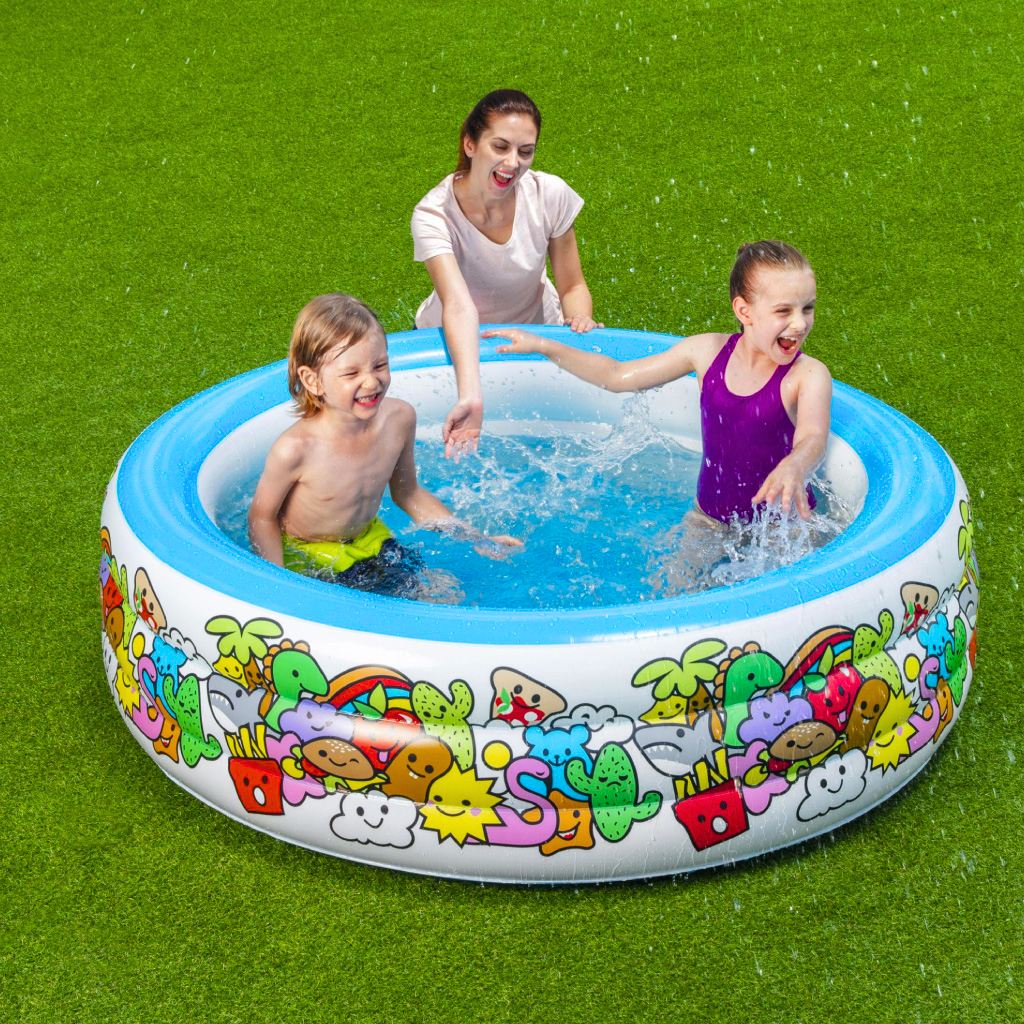 حمام سباحة دائري قابل للنفخ 152 × 51 سم – Bestway 51121مناسب للأطفال بعمر 6 سنوات فأكثر.تصميم بثلاث حلقات قابلة للنفخ لمزيد من الثبات.قاعدة لينة ومريحة – مصنوع من PVC متين.السعة: 400 لتر.حجم العبوة: 30 × 35 × 9 سم – الوزن: 2.5 كجم.المرفقات: قطعة إصلاح.