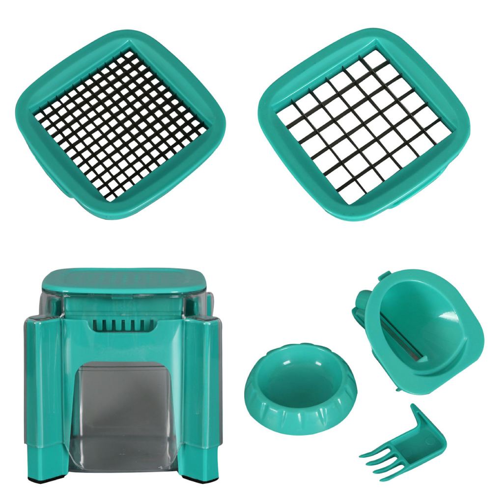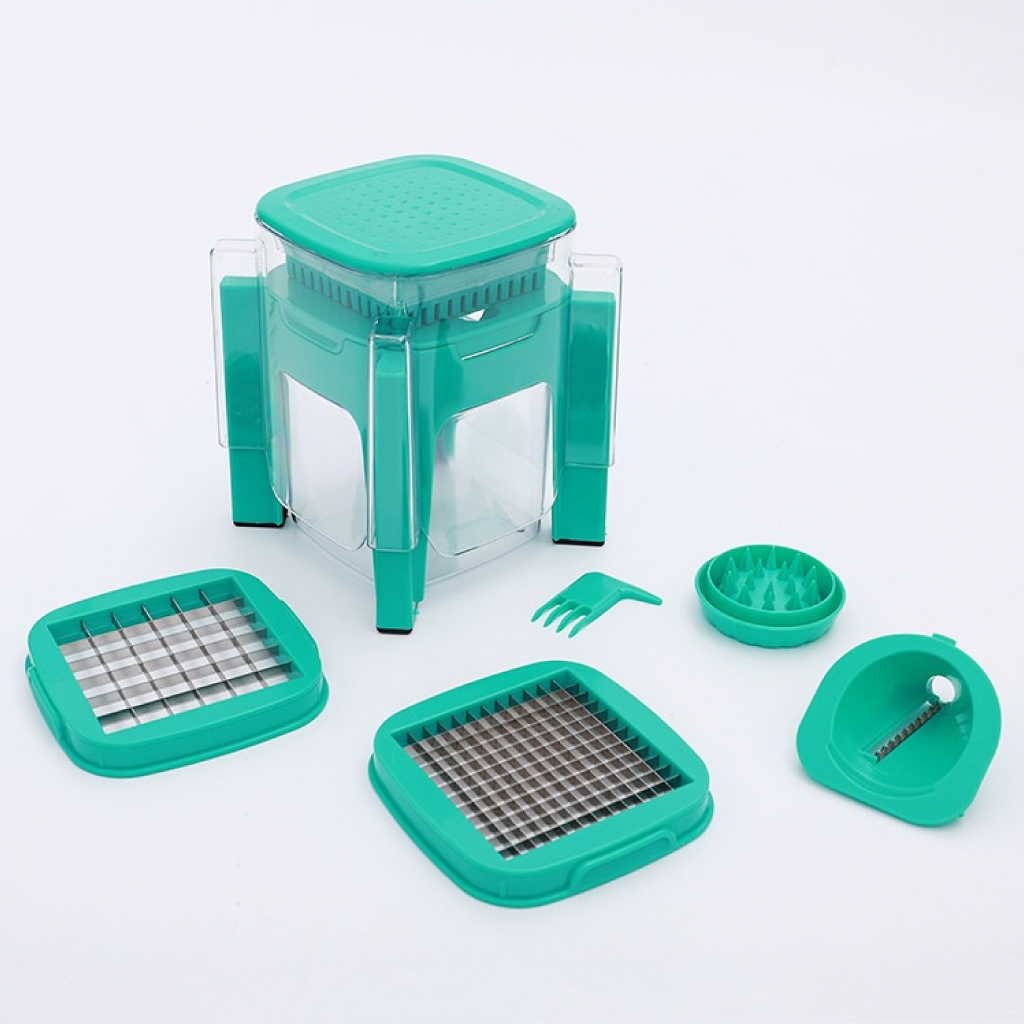 قاطعة خضروات آمنة ومتعددة الشفرات 🔪تصميم مربع مبتكر: يوفر قبضة ثابتة ويقلل من الحوادث.شفرات متعددة: تناسب أنماط تقطيع متنوعة للفواكه والخضروات.سهولة التنظيف: آمنة في غسالة الصحون وتحتوي على وعاء تصريف أسفل المفرمة.نتائج دقيقة: تتيح تقطيعاً ناعماً وسريعاً..