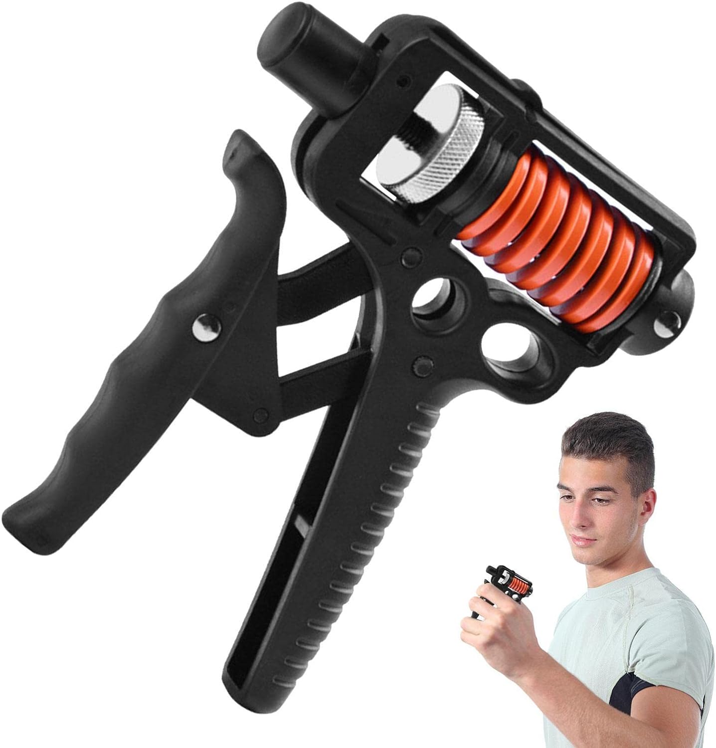مقوي قبضة اليد القابل للتعديلقوة إمساك عالية: يساعدك على تمرين أصابعك ويدك بكفاءة عالية.مقاومة قابلة للتعديل: يمكن تغيير المقاومة بين 5 و160 كجم لتناسب مستويات القوة المختلفة.مستوى احترافي: مصمم للرياضيين المحترفين مع إمكانية ضبط حتى 165 كجم.تصميم صغير ومحمول: خفيف الوزن وسهل الحمل، مناسب للموظفين والهواة للتدريب في أي مكان وزمان.تصميم مريح: يعمل بآلية متوازية لتطوير عضلات اليد والمعصم والذراع بشكل متناسق.