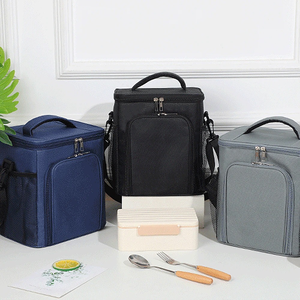 Gardez vos aliments à la température parfaite avec ce sac à déjeuner isotherme polyvalent.Fabriqué en tissu Oxford de qualité, ce sac à déjeuner dispose d’une couche d’isolation intégrée et d’un compartiment de refroidissement pour isoler efficacement les changements de température externes.Convient pour les employés de bureau, les étudiants et les voyageurs qui ont besoin d’apporter leur propre déjeuner.Parfait pour diverses occasions telles que les bureaux, les écoles, les pique-niques et les voyages, assurant la température de vos aliments.Avec son design spacieux, sa bandoulière réglable et sa poignée, ce sac à déjeuner offre commodité et confort pour transporter plusieurs conteneurs de repas et boissons.